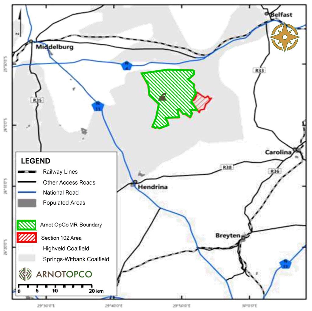 Arnot Coal mine currently mines the No. 2 Seam Lower from one underground shaft using mechanised board and pillar mining method through a continuous miner (CM). Production commenced in 2022.
